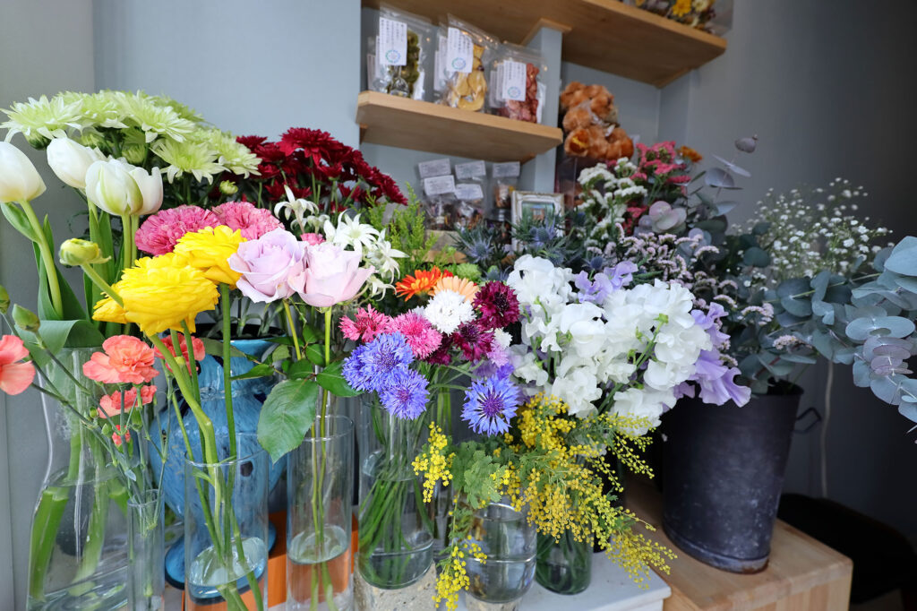 秋保電鉄のとなり、看板のないフラワーショップ。季節のお花に彩られた店内では、フレンチスタイルのブーケを楽しむことができます。「大好きな秋保でお花屋さんをしたい」というオーナーの思いがあり、パリでの修行のあと秋保にお店をオープンしました。旅する花屋として、国内外の旅の中で出会った雑貨の販売も行っています。日々のお部屋に飾るお花や、特別な日に贈る花束も、ひとつずつ話を聞きながらつくります。ときには、地域のイベントへの出店やコラボレーションしての販売イベントも行っています。